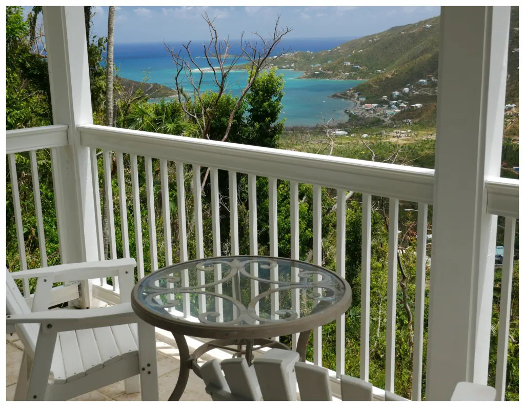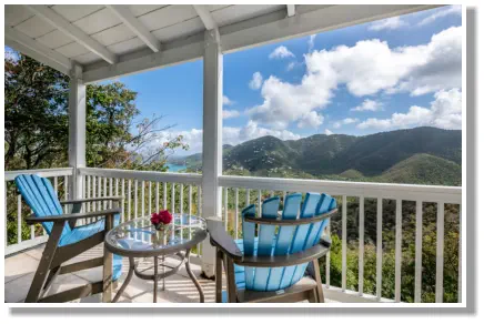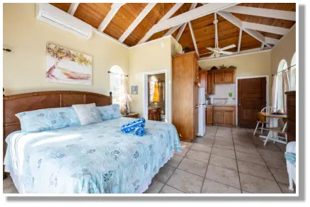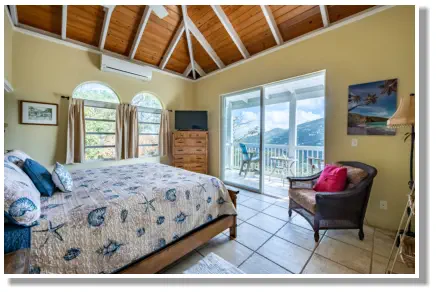 enjoy the views of Coral Bay and the Bordeaux Valley from the king bed in this air conditioned bedroom. The master